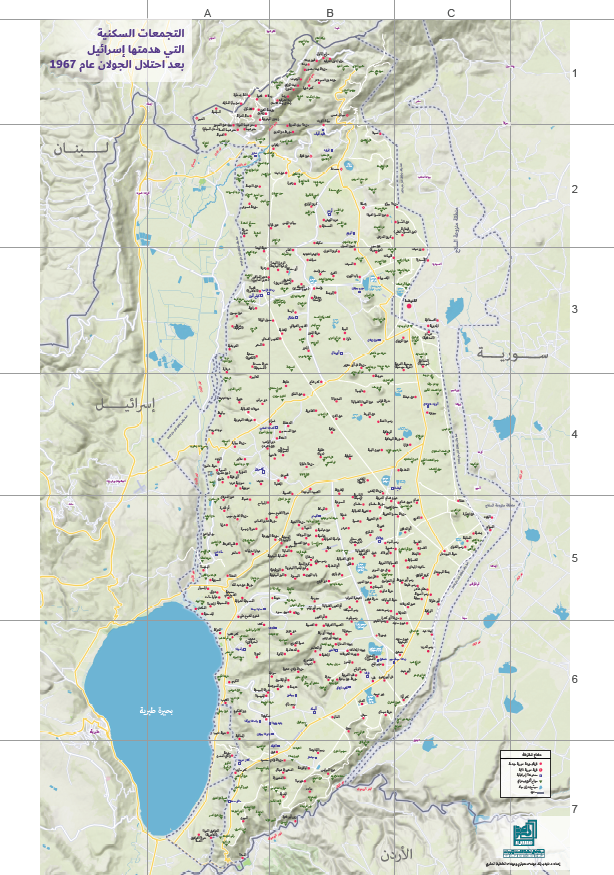 خريطة التجمعات السكنية التي هدمتها إسرائيل بعد احتلال الجولان عام 1967